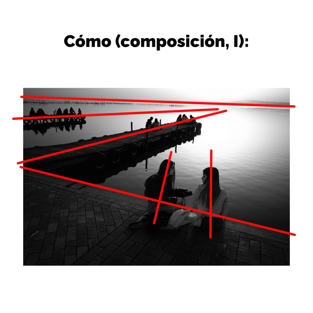 Fíjate en el espacio alrededor de la cabeza de la segunda chica empezando por la derecha: si la cámara estuviese unos centímetros más abajo su pelo se fundiría con el reflejo del embarcadero y sería más difícil de distinguir. Esos pequeños detalles facilitan la lectura de las siluetas y contornos.